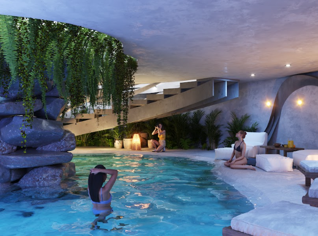 Sus amenidades están increíbles, por ejemplo: alberca subterránea tipo cenote, 125 m de carriles de nado en rooftop con albercas, restaurante, spa, coworking & gym