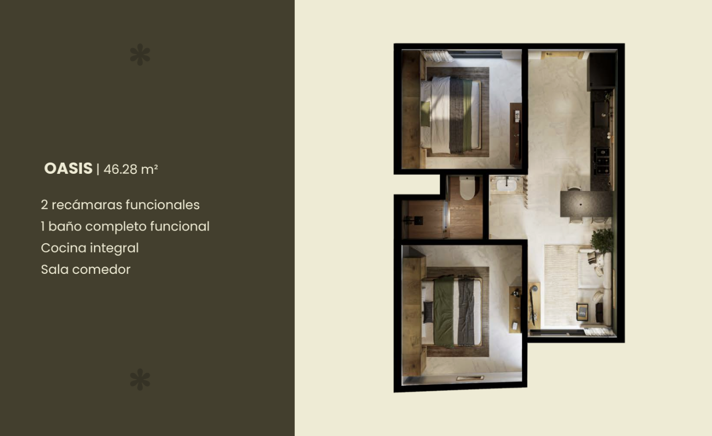 4,170,000 mxn Ayana | Playa del Carmen Está ubicado a minutos de la playa, la 5ta Avenida y del ferry a Cozumel, con fácil acceso a todo lo que hace atractivo al destino: restaurantes, tiendas, vida nocturna y servicios Esto lo convierte en una excelente opción tanto para vivir de forma permanente como para invertir y generar ingresos por renta Cuenta con más de 15 amenidades que enriquecen la vida diaria, como rooftop con infinity pool, jacuzzis, sky gym, yoga space, fire bowls, camas de masaje, área de asador y más... Al ser proyecto boutique, Ayana ofrece mayor privacidad y calidad de vida frente a desarrollos más grandes donde la saturación puede afectar la experiencia y el confort EL DEPARTAMENTO El departamento es 2 recámaras, baño, cocina, y está en 4,170,000 mxn Además, se entrega amueblado, equipado y decorado, listo para disfrutarse desde el primer día La perfecta combinación de ubicación y amenidades que hacen que vivir aquí se sienta como estar en un resort boutique todos los días PREVENTA con entrega diciembre 2026