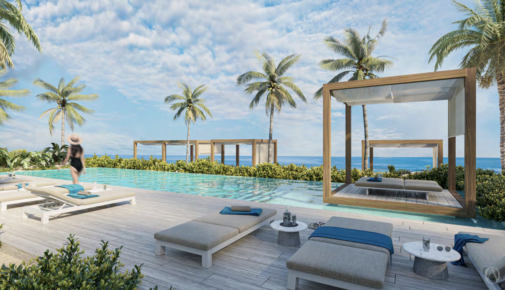 Terraza de Playa, Terraza Sky, Sky Bar, Jacuzzi Piscina de Playa Infinita Cabañas en Playa y en Piscina Cabaña Deportiva de Playa Restaurante De Piscina Gimnasio, Cancha De Pádel, Carril De Natación Tablas De Paddle y Kayaks Fire Pit Coworking Cuarto De Juegos Servicio Al Cuarto, Valet, Recepción, Lobby Bicicletas Eléctricas, Transporte Seguridad 24/7 Preventa con entrega en marzo 2028 *Los precios pueden cambiar sin previo aviso.