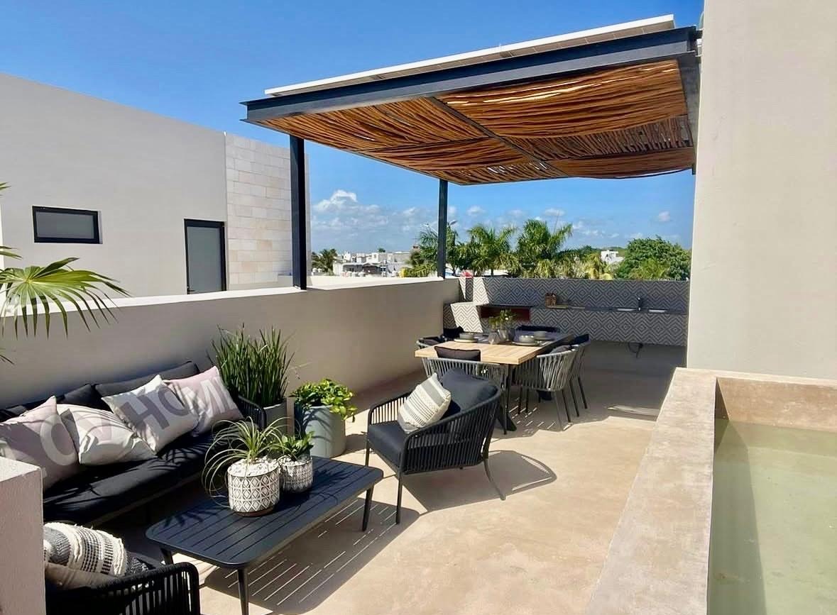 4,200,000 mxn Casa Paraíso Playa Encantada Paraíso Playa Encantada es un desarrollo residencial privado y moderno con casas que combinan diseño contemporáneo, espacios funcionales y amenidades completas, dentro de un entorno tranquilo con acceso rápido a lo mejor de la Riviera Maya Se encuentra cerca de centros comerciales, hospitales y escuelas, y a solo 9 minutos de la playa Punta Esmeralda y la Quinta Avenida, logrando el equilibrio perfecto entre vida residencial y conexión con la zona turística El desarrollo cuenta con amenidades que realmente se usan en el día a día, desde gimnasio, área de yoga, ludoteca, alberca para adultos y niños, salón de usos múltiples, cancha de pádel, área de camastros, amplias áreas verdes y más… LA CASA La casa es de 3 recámaras, 2 niveles + rooftop, 3.5 baños, alberca privada Planta baja: -Área de sala-comedor -Cocina equipada -Baño completo -Recámara con espacio para closet -Patio y cuarto de servicio -Estacionamiento Planta alta: -2 recámaras con espacio para closet -2 baños completos (uno en cada recámara) Rooftop: -Rooftop privado con alberca -Cuenta con barra, parrilla, tarja y techo pergolado -Medio baño Ese equilibrio entre tranquilidad, accesibilidad y estilo de vida es justo lo que buscan tanto familias como inquilinos No es solo una casa: es un entorno pensado para vivir bien todos los días o para generar ingresos con buen potencial de renta Disponibilidad: Entrega inmediata y preventa con entrega en mayo 2026