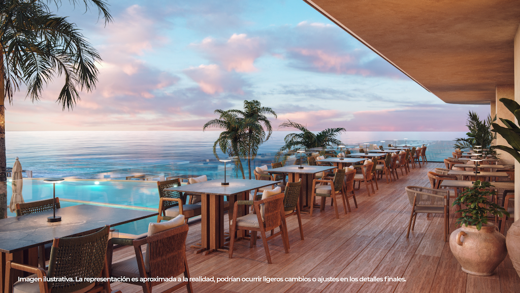 -Lobby con recepción profesional que eleva la experiencia de los propietarios desde su llegada -Alberca con club de playa tipo resort como principal atractivo visual y de estancia -Restaurantes gourmet en planta baja y roof top, que permitirán a los propietarios gozar de una comida o una deliciosa cena con vista al mar -Spa con servicio premium -Gimnasio -Sky Bar *Los precios pueden cambiar sin previo aviso.