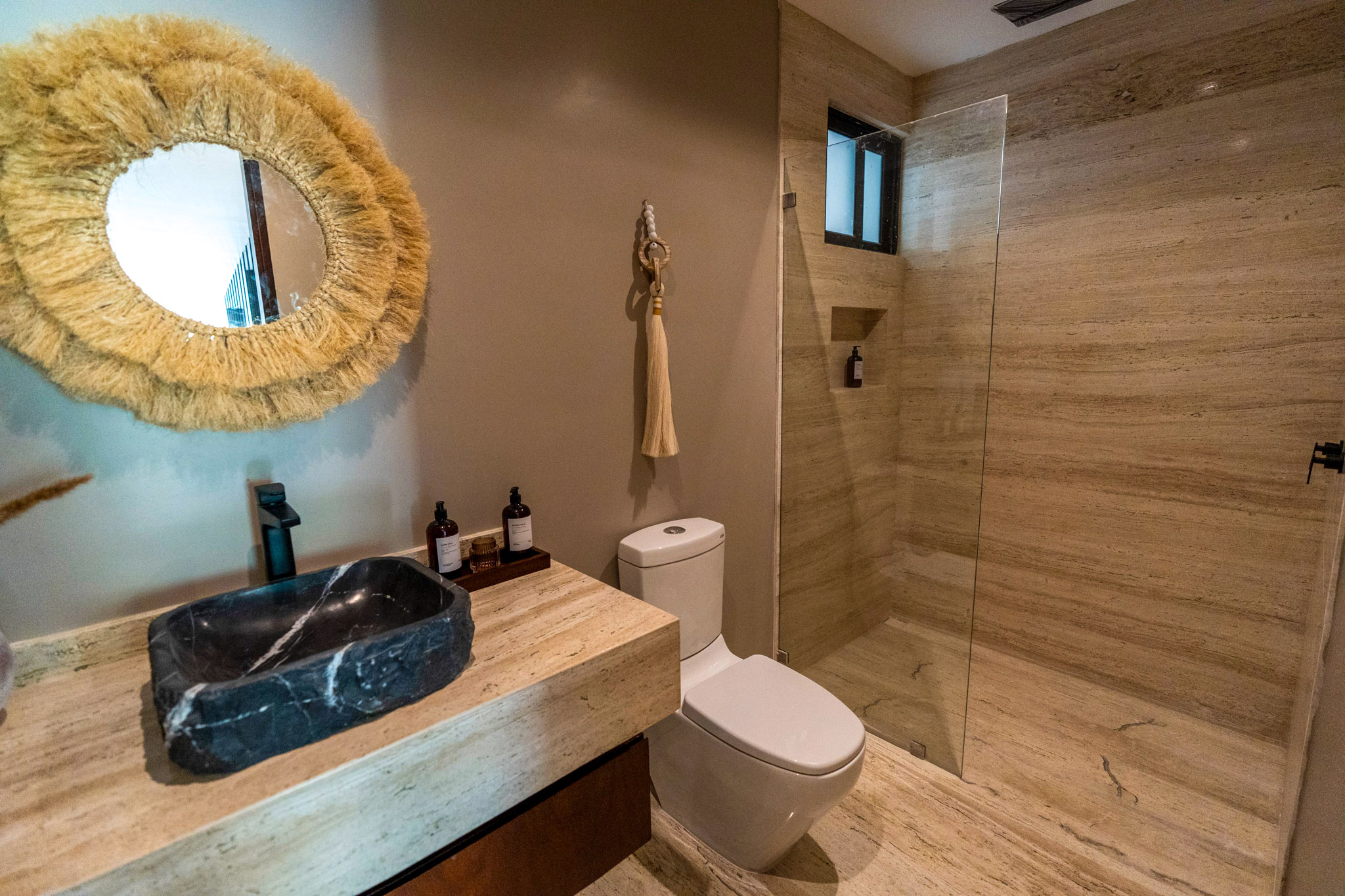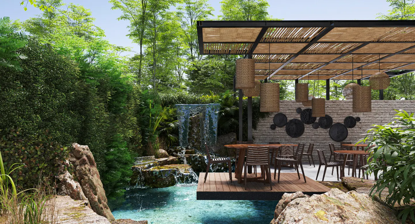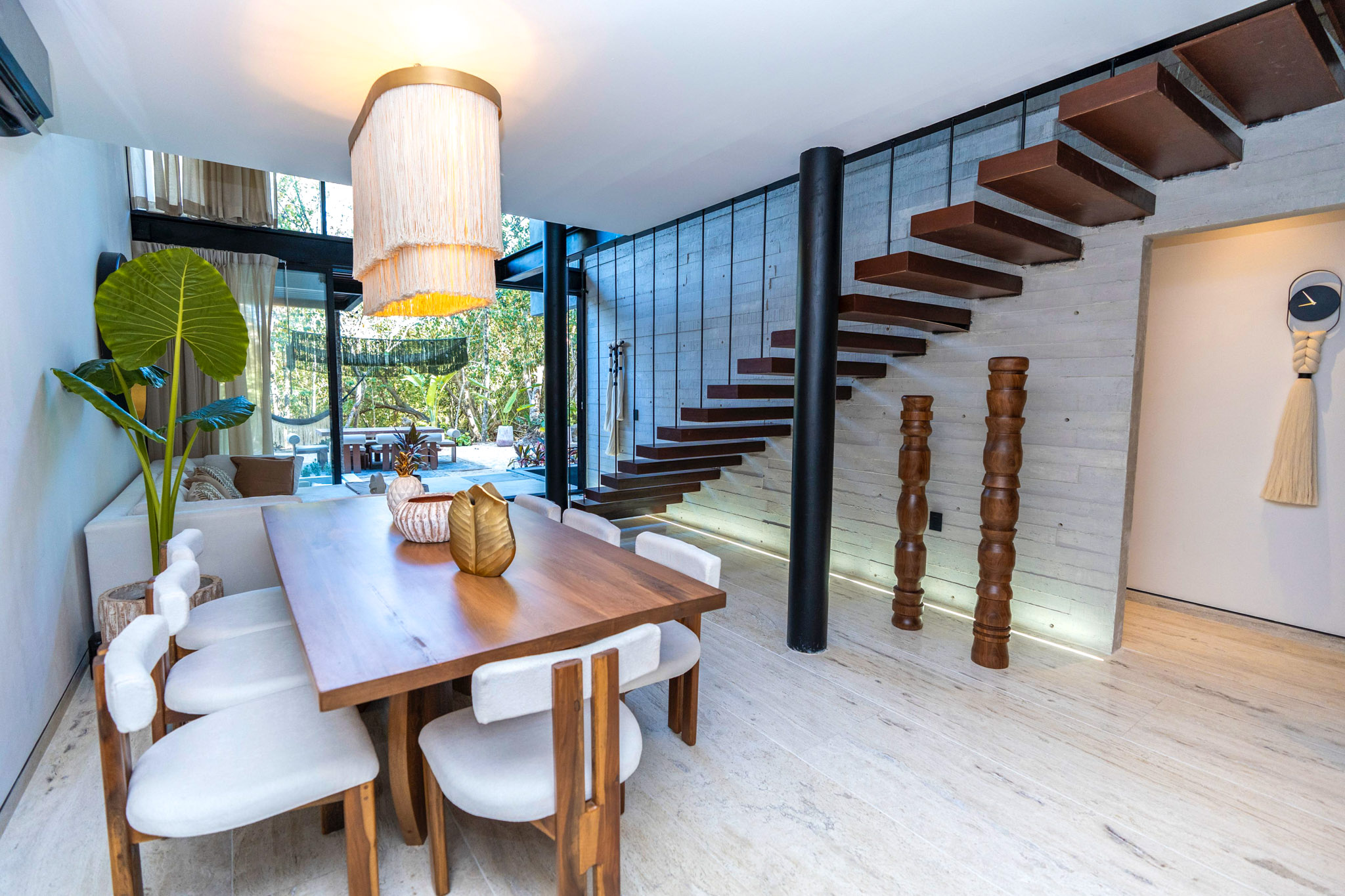 Residencias tipo loft con terrazas amplias, rooftop con vistas al mar, cenote lounge, jacuzzi selvático y acceso exclusivo al beach club y campo de golf.